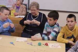 Ученици су са великим интересовањем слушали приче о некадашњем животу, а потом су имали прилику да се и сами опробају у везу. Уз подршку и вођење искусних везиља, настали су први дечји „бодови“, праћени осмесима, радозналим питањима и поносом због новостечених вештина.