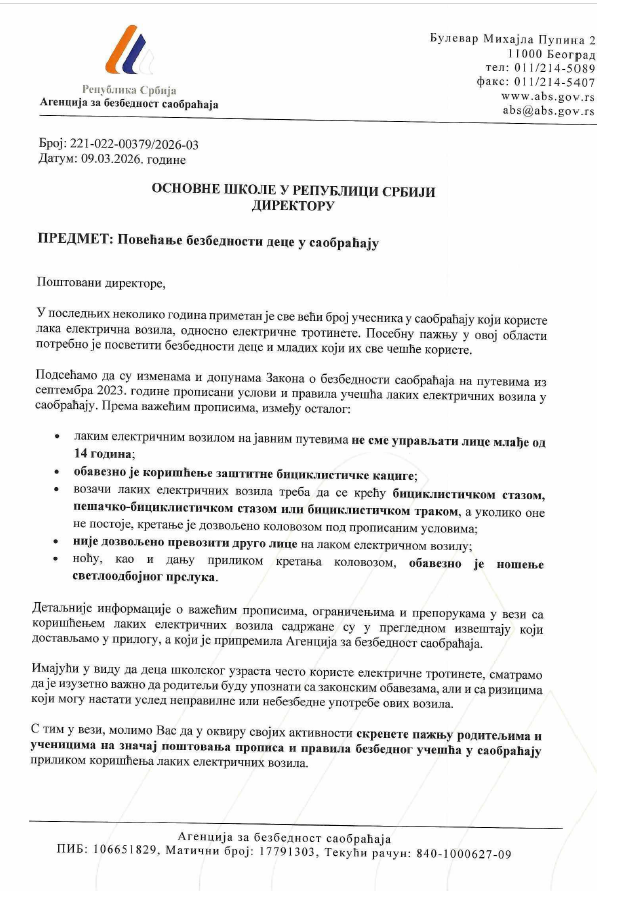 • ОБАВЕШТЕЊЕ ЗА БЕСПЛАТНЕ УЏБЕНИКЕ 28. март 2026.